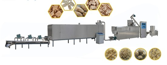 大豆組織拉絲蛋白是 濟南百脈海源膨化機械有限公司采用先進膨化生產設備,將含油1%的低溫豆粕(低溫食用豆粕是采用溶劑浸出法制油后,經低溫脫溶處理,蛋白變性較小,水溶性蛋白質含量較高的食用大豆粕,是加工蛋白的必要原料),大豆濃縮蛋白及分離蛋白等經擠壓、膨化機的高溫高壓處理而成,具有良好的吸水性、保油性和纖維狀結構,口感類似于肉類,是一種理想的高蛋白肉制品添加物。在肉制品應用中,可降低加工成本,提高產品中的蛋白含量,使之具有更高的營養價值;經浸泡后,制成各種形狀的炒、 煮、炸等各種風味的素肉食品。蛋白素肉又稱大豆組織蛋白,它是以大豆蛋白為主要原料,經過粉碎、調制、膨化等工藝生產的健康新食材。其口感潤滑筋道、易入味,可用于涼拌、熱炒、煲湯、油炸等。
